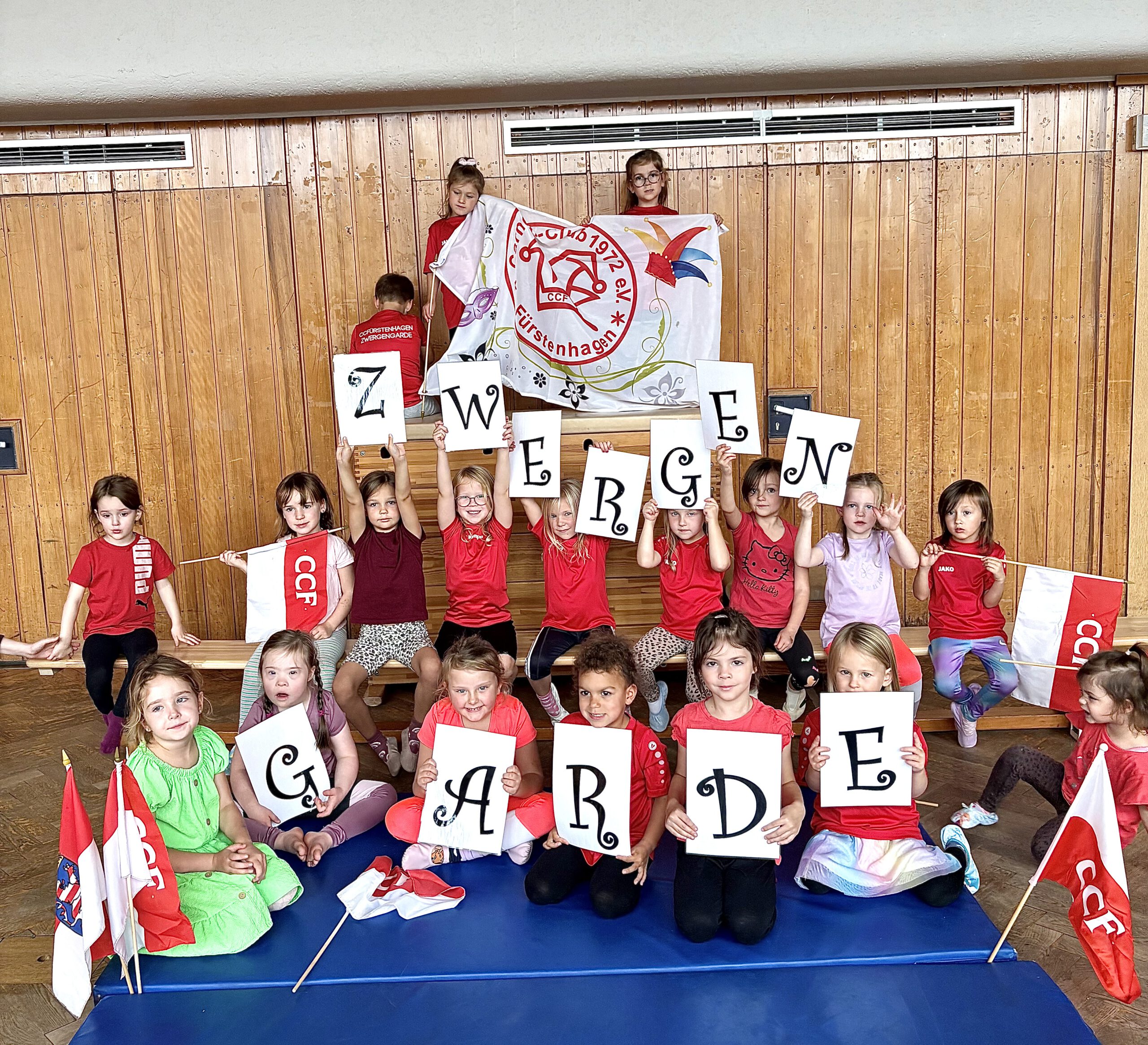 Die Zwergengarde im vollen Glanz, beim wilden, bunten Cowboytanz.Füße stampfen, Hände klatschen, Lassos fliegen, Kinder lachen.Zu unserem Tanz, kommt her, ihr Leute mit Jubel , Spaß und ganz viel Freude.